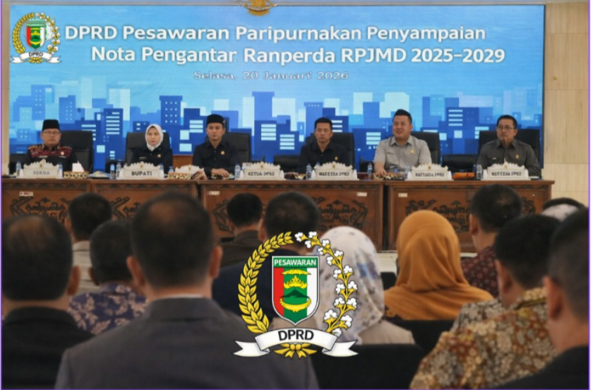 Rapat paripurna tersebut berlangsung di Gedung Serba Guna (GSG) Pemerintah Kabupaten Pesawaran, Selasa (20/1/2026), dan dipimpin oleh pimpinan DPRD Pesawaran, serta dihadiri Bupati Pesawaran beserta jajaran Forkopimda, kepala OPD, dan anggota DPRD.