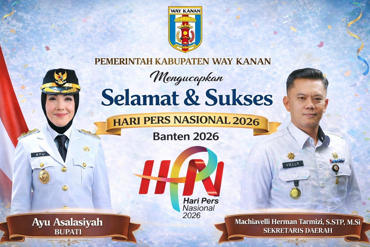 Way Kanan, Tipikor.news — Sekretariat Daerah Kabupaten (Setdakab) Way Kanan menyampaikan ucapan Selamat dan Sukses Hari Pers Nasional (HPN) Tahun 2026 yang diselenggarakan di Provinsi Banten.